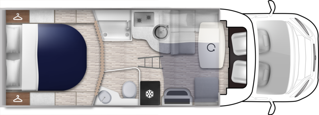 Fie că ești la prima experiență cu o autorulotă sau un călător experimentat, Baron 579 îți va depăși așteptările. Cu un bord complet digital, volan multifuncțional, cruise control și poziție înaltă de condus, te vei simți în control, în siguranță și… cu zâmbetul pe buze.